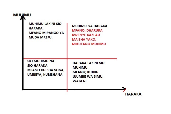 Katika kuweka kipaumbele kwenye maisha yako na kazi zako, tutatumia picha ifuatayo;