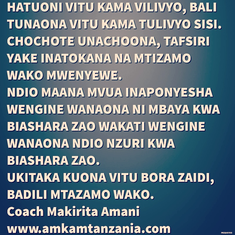 Fanyia kazi hilo kwanza kabla hujakazana kutafuta mafanikio, maana kama mawazo hayajawa sawa, hutaweza kuyaona mafanikio.