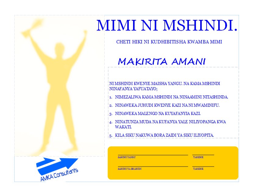 SEMINA; MIMI NI MSHINDI, Ahadi Yangu Na Nafsi Yangu.