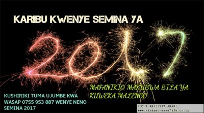 Kama unavyojua rafiki yangu, mwaka 2017 sitaki utani kabisa na wewe, kama umeamua kubadili maisha yako basi lazima ukafanye kitu kwa mwaka huo. Na kitu cha kwanza kabisa ambacho nimekuambia ufanye ni kuacha kabisa kuweka malengo kwa mwaka huo 2017. Badala yake nitakupa mfumo mpya wa kuendesha maisha ambao siyo wa malengo, mfumo huo ni bora kuliko malengo. Kujifunza haya yote karibu kwenye semina ya mwaka 2017 ambayo itaanza tarehe 04/01/2017 kwa njia ya mtandao. Kupata taarifa zaidi za semina hii bonyeza maandishi haya.