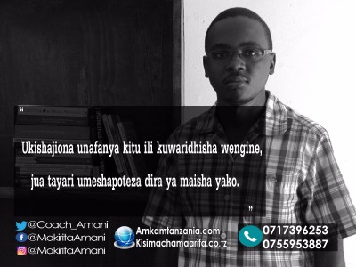 Makala hii imeandikwa na Deogratius Kessy ambaye ni mwandishi, mhamasishaji na mjasiriamali, unaweza kuwasiliana naye kupitia namba 0717101505/0767101504 au kwa barua pepe deokessy.dk@gmail.com, kessydeo@mtaalamu.net au unaweza kutembelea tovuti yake, www.mtaalamu.net/kessydeo ,www.actualizeyourdream.blogspot.com
