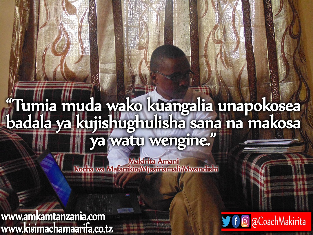Makala hii imeandikwa na Deogratius Kessy ambaye ni mwandishi, mhamasishaji na mjasiriamali, unaweza kuwasiliana naye kupitia namba 0717101505/0767101504 au kwa barua pepe deokessy.dk@gmail.com, kessydeo@mtaalamu.net au unaweza kutembelea tovuti yake, www.mtaalamu.net/kessydeo ,www.actualizeyourdream.blogspot.com kujifunza kila siku. Asante sana.