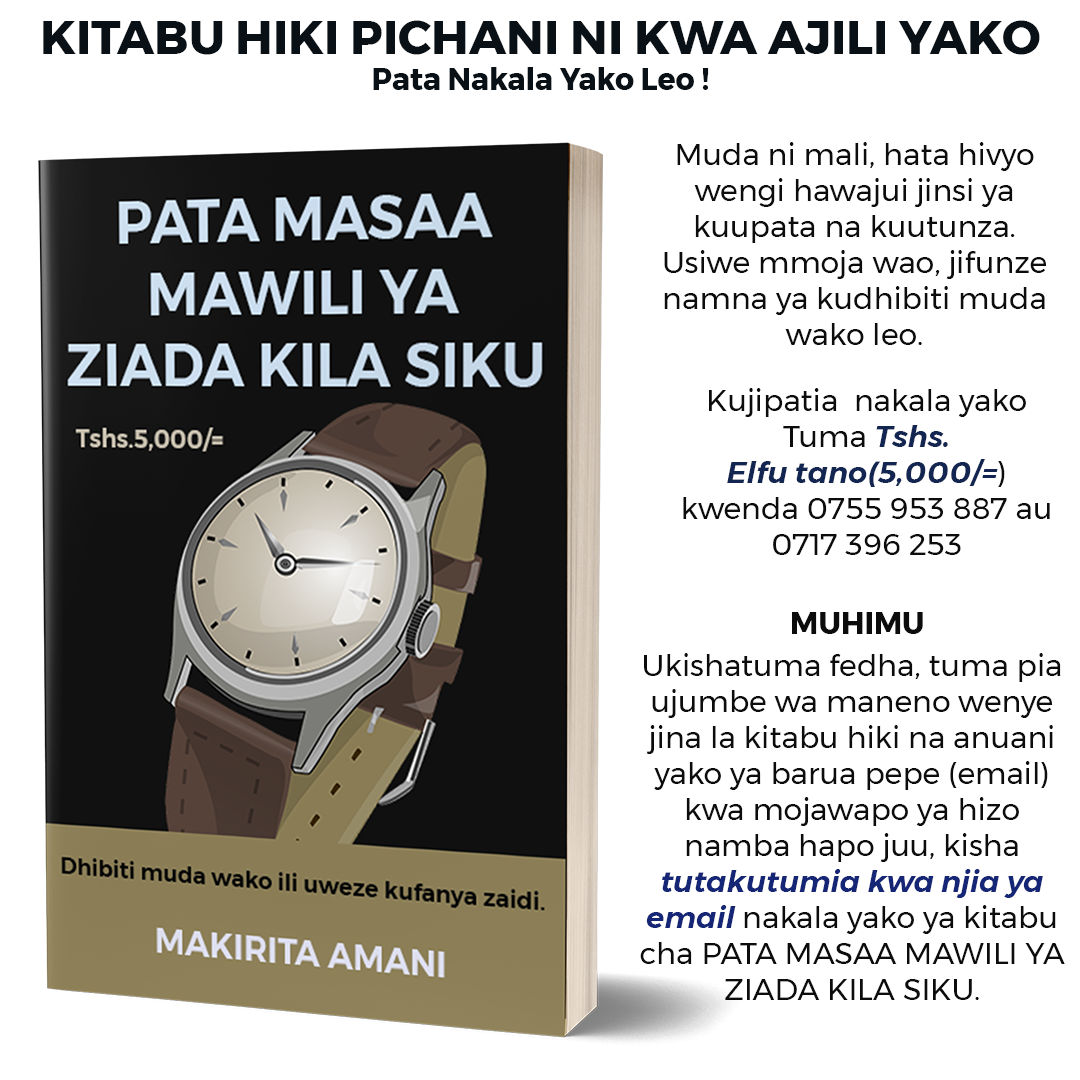 Nisikuweke hapa muda mwingi rafiki, bali ingia kwenye somo letu la leo, uweze kujifunza na kuanza kutawala muda wako leo.
