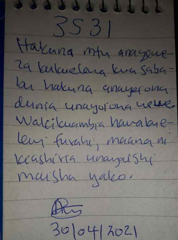 Ukurasa wa kusoma ni u mpweke; http://www.kisimachamaarifa.co.tz/2021/04/29/2311