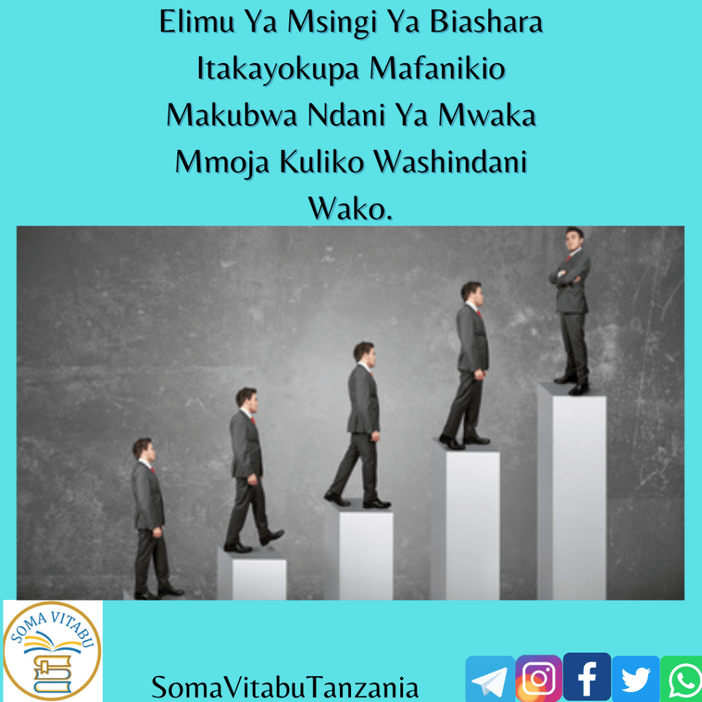 Yote hayo, unajifunza kwa kina na kujua hatua za kuchukua kwa kusoma kitabu kinachoitwa ELIMU YA MSINGI YA BIASHARA.