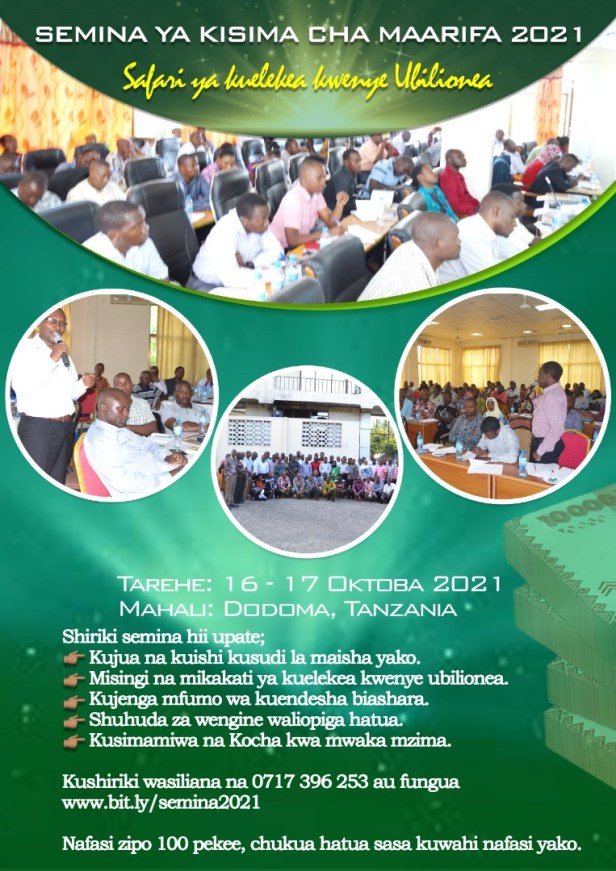 Kama bado hujapata taarifa kamili za semina hii pamoja na kujihakikishia nafasi ya kushiriki, soma maelezo kamili hapo chini.