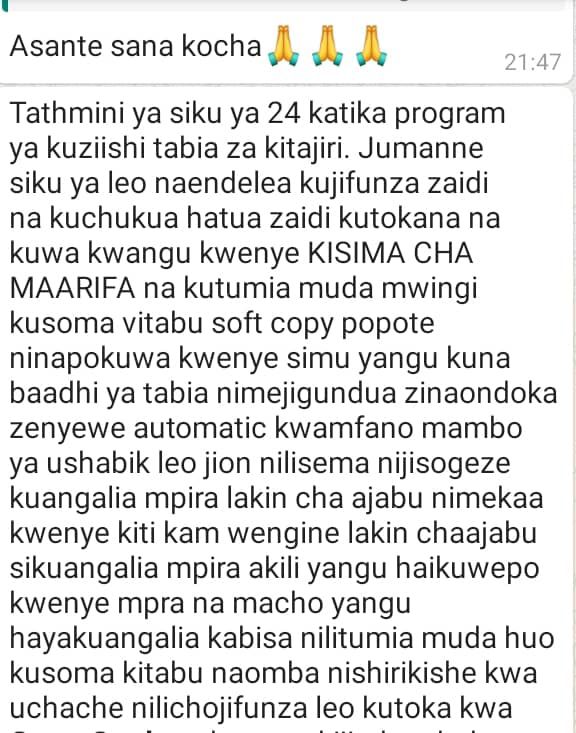 Kama tayari upo kwenye KISIMA CHA MAARIFA, fanyia kazi ile miongozo yote ninayoshirikisha, jibu yale ninayokuuliza mara kwa mara, unaweza kuyaona ni madogo, ila mimi kocha wako najua nguvu yake.