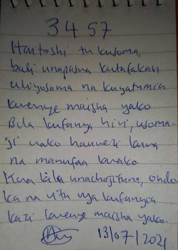 Usifurahie tu kusoma, bali chukua hatua kupitia yale unayojifunza.