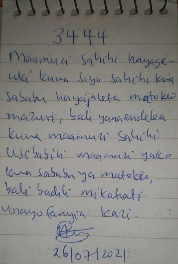 Ukurasa wa kusoma ni usibadili maamuzi; http://www.kisimachamaarifa.co.tz/2021/07/25/2398