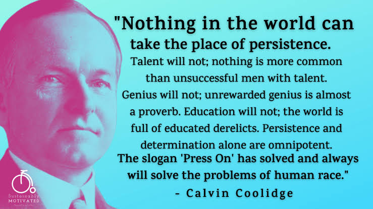 Aliyekuwa raisi wa Marekani Calvin Coolidge aliwahi kunukuliwa akisema; Hakuna chochote duniani kinachoweza kuchukua nafasi ya ung’ang’anizi. Kipaji hakiwezi, dunia imejaa wengi wenye vipaji ila hawajafanikiwa. Akili haiwezi, wapo wengi wenye akili sana ila hawana mafanikio. Elimu haiwezi, dunia imejaa wasomi wengi wasio na mafanikio. Ni ung’ang’anizi na maamuzi pekee vilivyo muhimu kwenye mafanikio. Kauli mbiu ya Endelea na mapambano imetatua na itaendelea kutatua matatizo mengi ya wanafamu.”