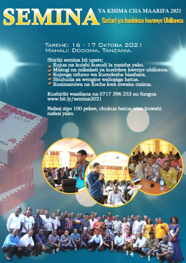 WAPI; Semina itafanyika jijini Dodoma, Tanzania. Ni ya kushiriki ana kwa ana ambapo tunakutana kwa pamoja na kuweka mikakati ya kupiga hatua zaidi.