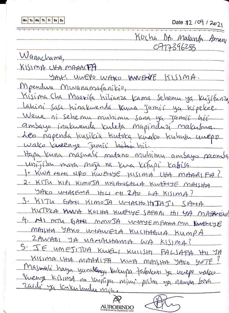 Swali la tano; Je umejitoa kweli kuishi falsafa ya KISIMA CHA MAARIFA?