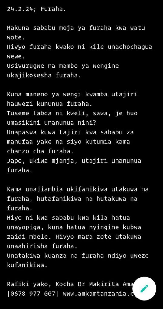 MAKALA PICHA 24.2.24; Furaha Date: February 24, 2024Author: Dr. Makirita Amani 0 Comments Washirikishe wengine: Click to share on WhatsApp (Opens in new window) WhatsApp Click to share on Telegram (Opens in new window) Telegram Click to share on Facebook (Opens in new window) Facebook Click to share on X (Opens in new window) X Click to share on LinkedIn (Opens in new window) LinkedIn Like Loading... Related