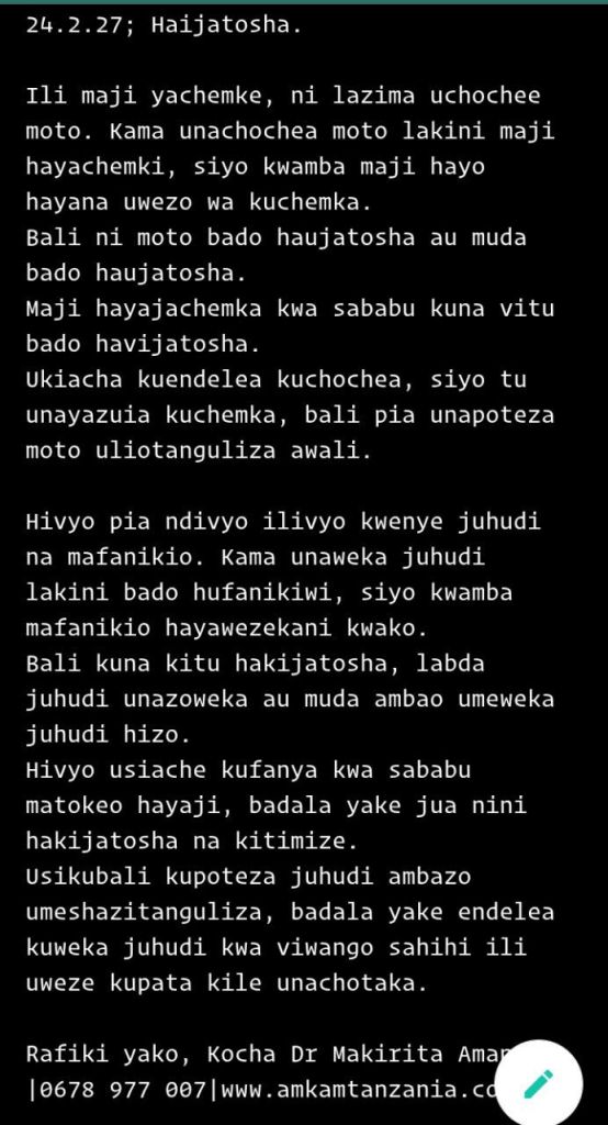 MAKALA PICHA 24.2.27; Haijatosha. Date: February 27, 2024Author: Dr. Makirita Amani 0 Comments Washirikishe wengine: Click to share on WhatsApp (Opens in new window) WhatsApp Click to share on Telegram (Opens in new window) Telegram Click to share on Facebook (Opens in new window) Facebook Click to share on X (Opens in new window) X Click to share on LinkedIn (Opens in new window) LinkedIn Like Loading... Related