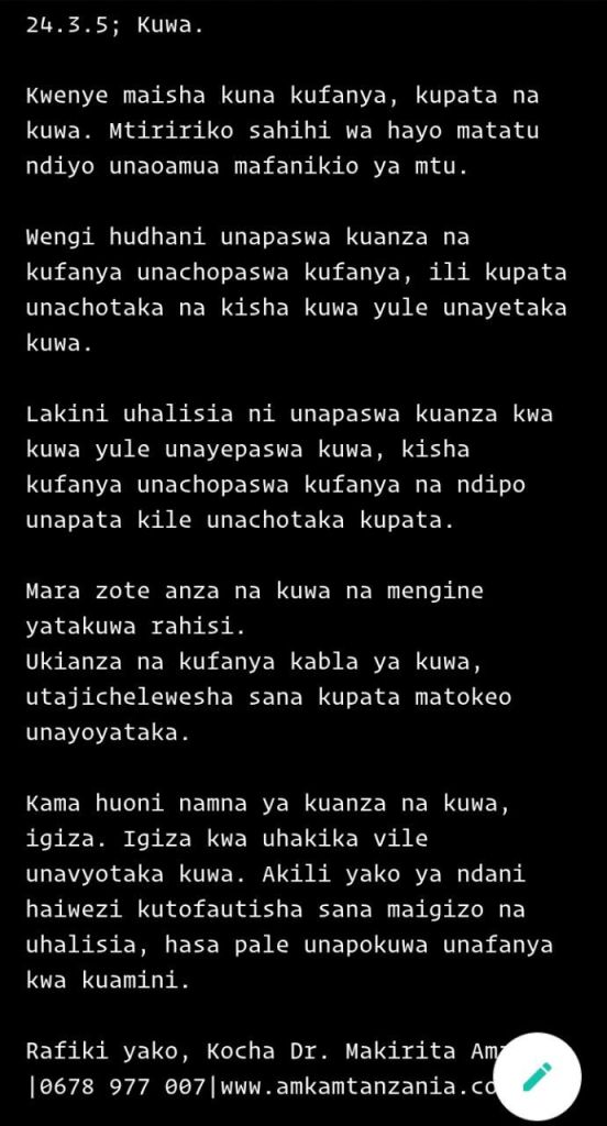 MAKALA PICHA 24.3.5; Kuwa Date: March 5, 2024Author: Dr. Makirita Amani 0 Comments Washirikishe wengine: Click to share on WhatsApp (Opens in new window) WhatsApp Click to share on Telegram (Opens in new window) Telegram Click to share on Facebook (Opens in new window) Facebook Click to share on X (Opens in new window) X Click to share on LinkedIn (Opens in new window) LinkedIn Like Loading... Related