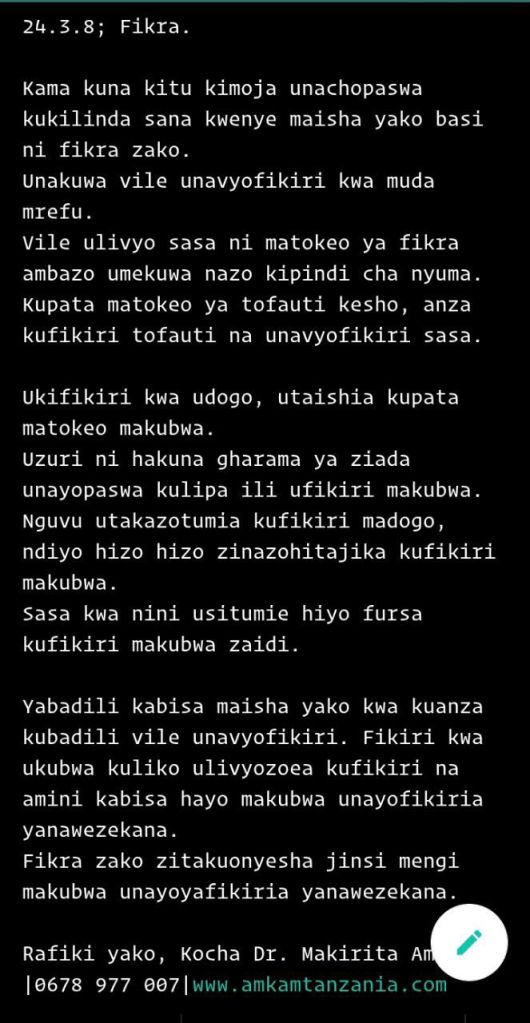 MAKALA PICHA 24.3.8; Fikra Date: March 8, 2024Author: Dr. Makirita Amani 0 Comments Washirikishe wengine: Click to share on WhatsApp (Opens in new window) WhatsApp Click to share on Telegram (Opens in new window) Telegram Click to share on Facebook (Opens in new window) Facebook Click to share on X (Opens in new window) X Click to share on LinkedIn (Opens in new window) LinkedIn Like Loading... Related