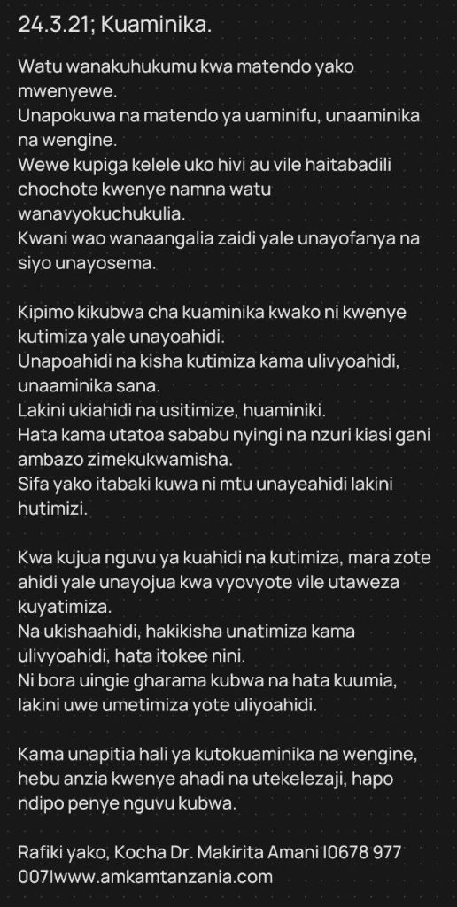MAKALA PICHA 24.3.21; Kuaminika. Date: March 21, 2024Author: Dr. Makirita Amani 0 Comments Washirikishe wengine: Click to share on WhatsApp (Opens in new window) WhatsApp Click to share on Telegram (Opens in new window) Telegram Click to share on Facebook (Opens in new window) Facebook Click to share on X (Opens in new window) X Click to share on LinkedIn (Opens in new window) LinkedIn Like Loading... Related