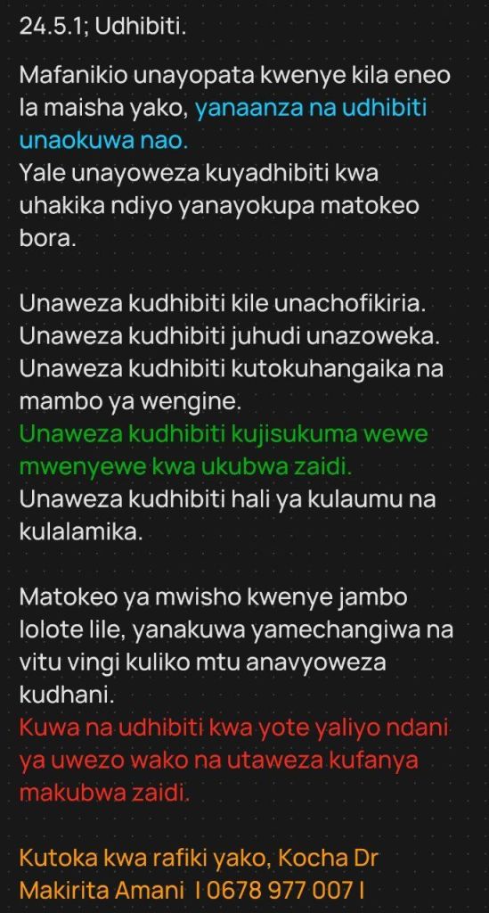 KURASA ZA MAISHA 24.5.1; Udhibiti. Date: May 1, 2024Author: Dr. Makirita Amani 0 Comments Washirikishe wengine: Click to share on WhatsApp (Opens in new window) WhatsApp Click to share on Telegram (Opens in new window) Telegram Click to share on Facebook (Opens in new window) Facebook Click to share on X (Opens in new window) X Click to share on LinkedIn (Opens in new window) LinkedIn Like Loading... Related