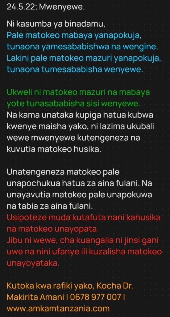MAKALA PICHA 24.5.22; Mwenyewe. Date: May 22, 2024Author: Dr. Makirita Amani 0 Comments Washirikishe wengine: Share on WhatsApp (Opens in new window) WhatsApp Share on Telegram (Opens in new window) Telegram Share on Facebook (Opens in new window) Facebook Share on X (Opens in new window) X Share on LinkedIn (Opens in new window) LinkedIn Like Loading... Related