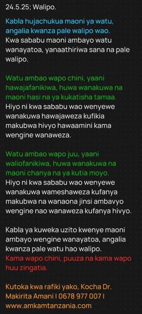 MAKALA PICHA 24.5.25; Walipo. Date: May 25, 2024Author: Dr. Makirita Amani 0 Comments Washirikishe wengine: Click to share on WhatsApp (Opens in new window) WhatsApp Click to share on Telegram (Opens in new window) Telegram Click to share on Facebook (Opens in new window) Facebook Click to share on X (Opens in new window) X Click to share on LinkedIn (Opens in new window) LinkedIn Like Loading... Related