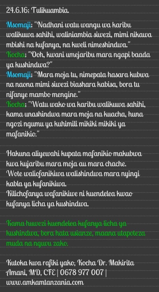 Ukikaidi na kufanya, utashindwa na hapo utaambiwa tulikuambia.