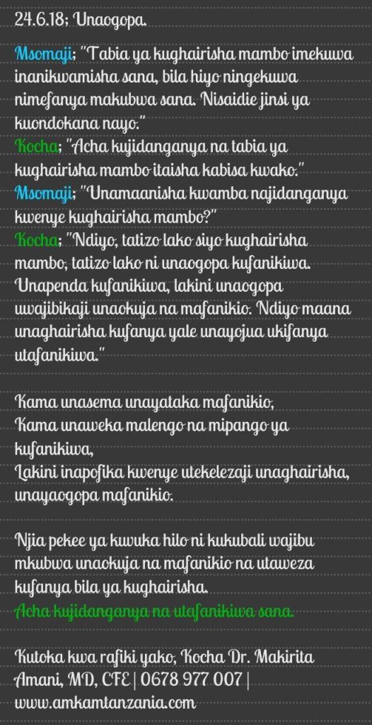 Matokeo yake moyo unashindwa na wewe kuishia kughairisha yale uliyopanga kufanya.