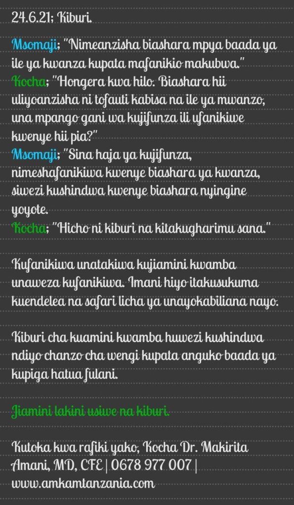 Jiamini kwamba utafanikiwa, lakini usiwe na kiburi kwamba huwezi kushindwa.