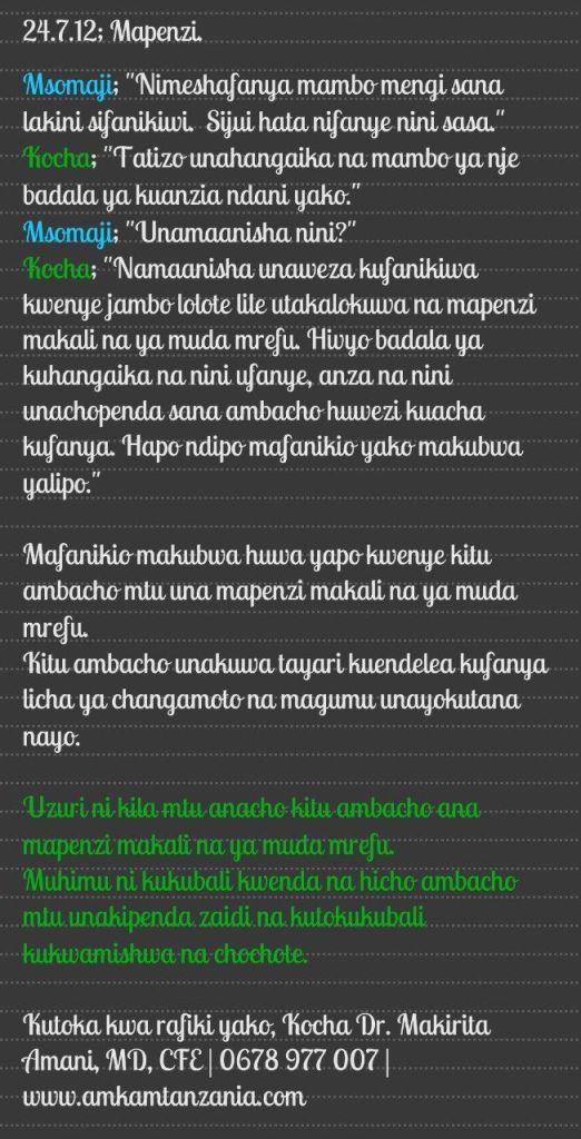 Kama unataka mafanikio makubwa, fanyia kazi kile ambacho una mapenzi makali na ya muda mrefu.
