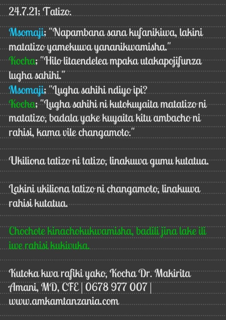 Lakini tatizo linaacha kuwa tatizo pale linapoonekana siyo tatizo bali ni changamoto.
