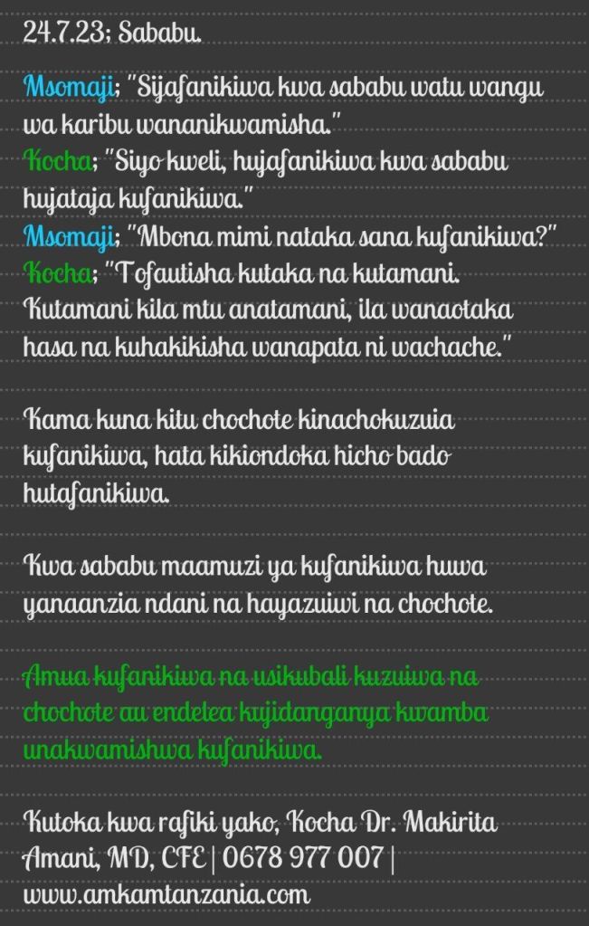 Taka kweli kufanikiwa na usikubali kukwamishwa na chochote.