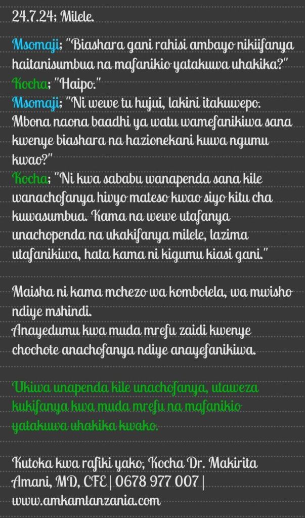 Bali kwa kupenda unachofanya, utavuka magumu mengi bila kukata tamaa.